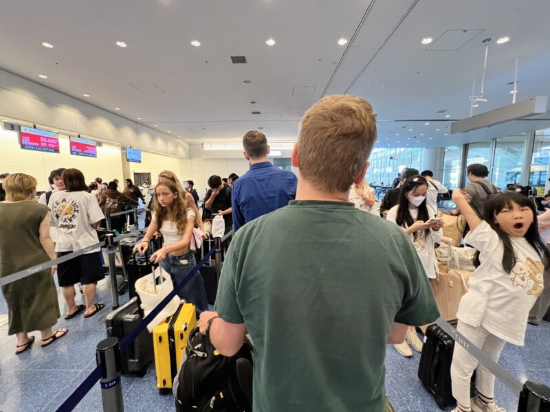 係員いわく、カウンターでのチェックインが必須らしい。つまり、オンラインチェックインをした意味がない。