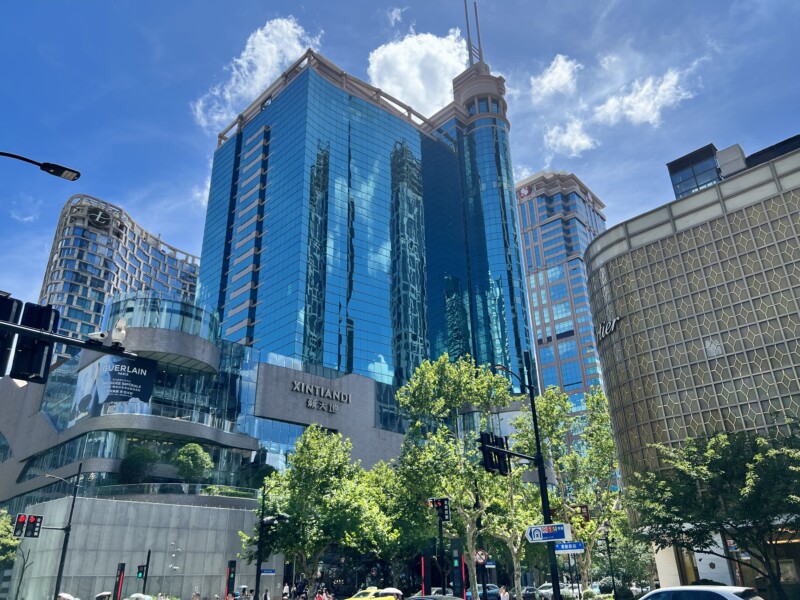 灼熱の太陽の下をさらに歩くと、新天地 という巨大モールに到着。ここは有名ブランドがずらりと並ぶ、まさに上海版の銀座や六本木といった雰囲気だった。