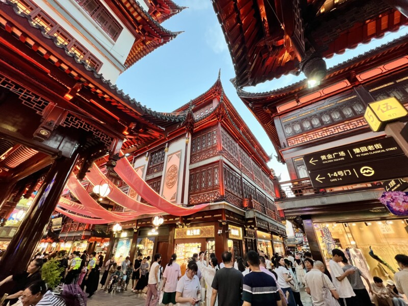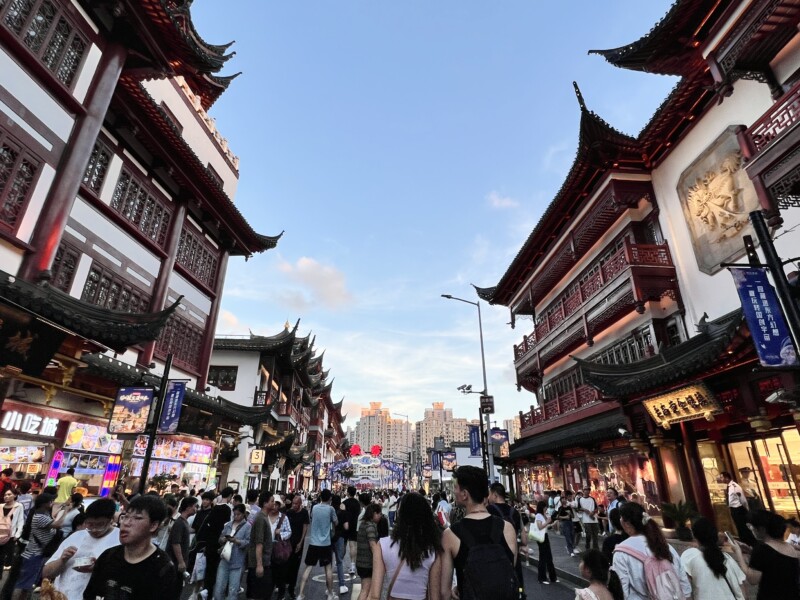 最寄り駅を降りると、いきなり目の前に広がるのは 明の時代にタイムスリップしたような箱庭の世界。大通りには露店がずらりと並んでいて、ナイトマーケットのような楽しみ方もできる。