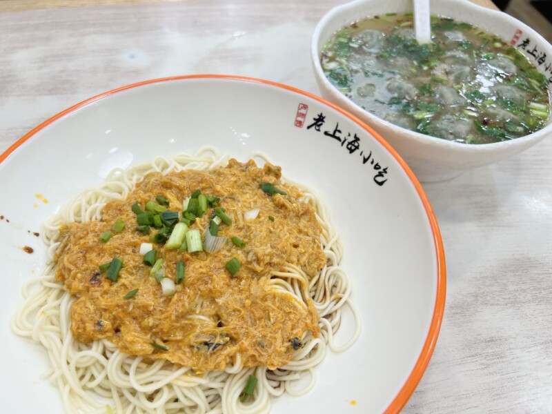 そんな中、見つけたのは南京東路近くの 老上海小吃 というお店。ここは混雑もなく、蟹黄麺もありそうだったのでお邪魔してみた。