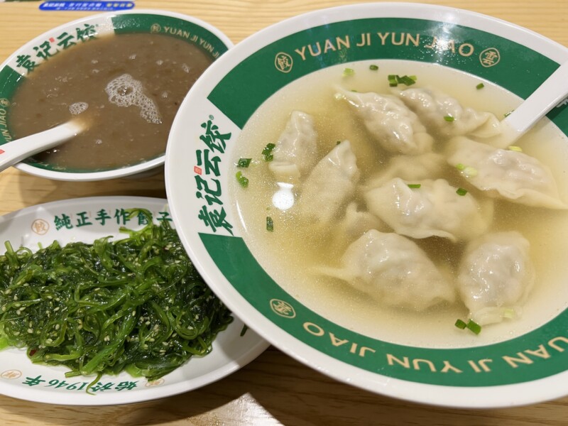 そこで、帰り道で見つけたダンプリング系の店に入ることにした。看板を見て気づいたが、ここは上海で気に入った 袁记云饺 だ。